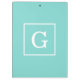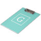 Aqua Turquoise White Framed Initial Monogram Clipboard