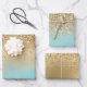 Aqua Watercolor Gold Glitter Wrapping Paper Sheet