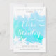 Modern abstract aqua blue watercolor splash with starfish and seagulls beach wedding couples shower invitation featuring a hand painted watercolor paint splash with texture in tones of aqua blue and turquoise, two starfish and seagulls in white and text in white and grey. This elegant and stylish casual wedding design is a completely customisable template perfect for your summer beach or destination wedding. Note that this is only an image of watercolor and not real texture. For best results choose paper with texture.