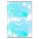 Modern abstract aqua blue watercolor splash with starfish and seagulls beach wedding folded place card featuring a hand painted watercolor paint splash with texture in tones of aqua blue and turquoise, two starfish and seagulls in white and text in white. This elegant and stylish casual wedding design is a completely customisable template perfect for your summer beach or destination wedding. Note that this is only an image of watercolor and not real texture. Fold it along the dotted line to have a tent style seating place card.