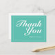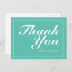 Pretty, modern, minimalist and trendy wedding thank you postcard features an aqua blue background (Pantone's 2022 colour pick "Cascade") with white customisable text blocks in modern fonts