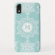 Aqua White Snowflakes Christmas Holiday Monogram Case-Mate iPhone Case