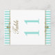 Aqua, White Stripes Gold Scrolls Table Number Card