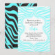 Aqua Zebra Graduation Invitation Custom Colour