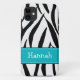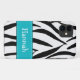 This cute girly and stylish aqua blue zebra print and animal print design with black and white stripes and a turquoise PRINTED stitched ribbon look design can be personalised with your name. Artwork © Chrissy H. Studios, LLC. All Rights Reserved.