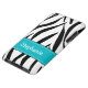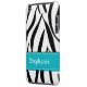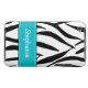 This cute, stylish and trendy custom zebra print iPod Touch 4g case 4th generation Case-Mate Barely There cover with black and white stripes and a aqua blue stitched ribbon design can be personalised with your name. Artwork © Chrissy H. Studios, LLC. All Rights Reserved.