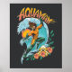 Aquaman and The Lost Kingdom | Check out Aquaman with his Trident rising out of the sea on a wave at sunset, featuring his name and icon with floral accent.
