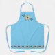 Lovely chef apron done in aquamarine with graphics of white edelweiss flowers, on a dark green stripe, lining the bottom hem and one large white edelweiss, on the bib. Great as a gift idea or for small businesses.