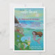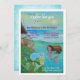 Under the sea mermaid birthday invitation with an array of colours including aquamarine, blue, and pink is versatile for little girl's mermaid birthday parties and other tropical celebrations! Cute mermaids with blue hair, brown hair, and colourful details are beautifully displayed in an ocean scene with a friendly jelly fish. Both mermaids and text can be moved around. Acrylic painting design can be transferred to your tropical stationary and cards.