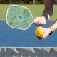 Aquamarine Seafoam Water Patchwork Monogram Pickleball Paddle