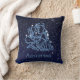 Throw pillow featuring the zodiac symbol for Aquarius in soft silver blue, overlaid with the stars of the constellation, against a starry sky background graded from deep midnight blue to black.