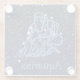 Glass coaster featuring the zodiac symbol for Aquarius in soft silver blue, overlaid with the stars of the constellation, against a starry sky background graded from deep midnight blue to black.