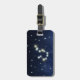 Dark blue luggage tag for an Aquarius, with shining stars forming the constellation.