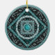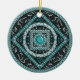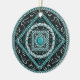 This Aquarius themed mandala features a turquoise stone surrounded by the symbol for the sign, the constellation, and the alchemical symbol for Air among filigree and weaves.
