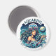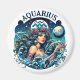 A fun horoscope sign Aquarius magnet with a pretty celestial illustration of a water bearer woman in front of stars and a full moon.