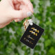 Elegant zodiac sign keychain with gold design on black background.
