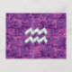 Aquarius Zodiac Symbol on Pink Digital Camouflage Postcard