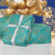 Aquatic Blue Gold Shiny Glass Damask Wrapping Paper