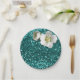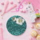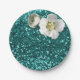 Aquatic Emerald Floral White Jasmine Glitter Paper Plate
