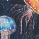 Aquatic Life Sea Creature Jellyfish Chalk Drawing Decor. Solutions for the interior decor.