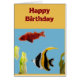 Great for anglers and fish lovers. Features fishes swimming in the sea amongst seaweed, with an Angel fish in the centre. Includes the text happy birthday which can be changed for any occasion. From my original glass painting. ©Annabel Potter
