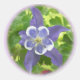 An Aquilegia caerulea (columbine flower) sheet of round stickers, with a pink faded border as a background. Photo was taken and edited by me, but I'm posting it in the PublicPhoto store as it is not a personal photograph.