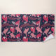 Ara Parrot Red Pink Drawing Tropical Leave Pattern Beach Towel . Ara pattern on dark blue background with tropical leaves in green, red and beige colours. Great for parrot lover and ara owner.