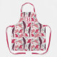Ara Parrot Red Tropical Leaf Pattern Monogram Apron. Red and burgundy ara parrots in a pattern on white background with tropical leaves. Add your name or erase it.