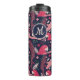 Ara Parrot Red Tropical Leave Pattern Monogram Thermal Tumbler. Ara pattern on dark blue background with tropical leaves in green, red and beige colours. Hand-drawn illustration. Add your monogram.