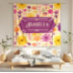 This colourful modern pattern features cascading yellow, purple, pink and orange flowers against a soft yellow background.