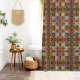 Shower curtain features a modern arabesque fractal pattern with created hearts. Colours in pattern include brown, purple, gold, red, pink, green and yellow - making it a great accent piece for a variety of home décor styles.