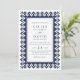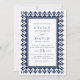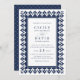 Our Arabesque wedding invitation in classic navy blue and white features a Moroccan inspired geometric border enveloping your wedding details in traditional serif and sans serif typefaces.