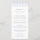 Our elegant wedding menu features your starter courses, entrees and desserts in timeless medium grey, accented with a Moroccan inspired geometric border along the top in ethereal pastel silver grey and white. Coordinates with our Arabesque wedding invitation collection in Silver Pearl.