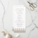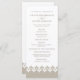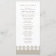 Our elegant wedding program features your ceremony details in soft sandy tan, accented with a Moroccan inspired geometric border along the bottom in linen beige. Reverse side lists the members of your wedding party with easily editable text fields. Coordinates with our Arabesque wedding invitation collection in Champagne.