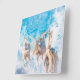 Dashing through the snow as Arabian Horse hair flows, a small horse army bullets towards mountains of blue as geometric flakes melt off the manes of Gods. Baby sky blue colors cover the crystalline pine tree forest.