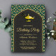 Invite your guests with this elegant birthday party invitation featuring an Arabian style arch design and traditional lattice pattern with a magic lamp. Simply add your event details on this easy-to-use template to make it a one-of-a-kind invitation.