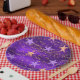 Gold twinkle lights and purple and gold stars set the stage for a magical Arabian Nights party.