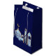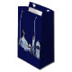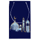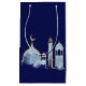 Arabian nights gift bags with beautiful blue and gold illustration on a royal blue background. These elegant Arabian night theme gift bags are easily customised for your event by adding text or changing the size and background colour.