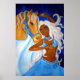 A poster from oil painting "Arabian Blues" a belly dancer playing finger cymbals. Arabian horse - the spirit of the desert. Oriental fantasy to brighten up your practice area or dance studio. An original gift for Middle Eastern bellydance enthusiast!