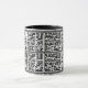 Arabic script with Islamic motifs tiled onto a black and white mug, perfect for devout coffee drinkers and oriental artists alike.