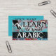 Colourful arty Learn To Speak Arabic business cards in turquoise, aqua, red, yellow. Arabic language Instruction business cards.