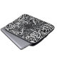 The sleeve is made of nice feeling material and seems very durable. I'm not sure how easy it'll be to clean, but the construction seems sound and the fabric is quick thick. I also like the double zipper. The printing is lovely and appears durable. The white on black contrast is nice, and the design very elegant.