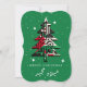Vibrant colored letters, trees, holly and cancy canes in a cheerful message suitable for a non-religious holiday greeting. I especially liked it on the black background which made the design pop.