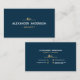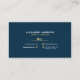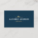 A dark blue business card with a simple illustration of a tree and a house and texts in white and gold colours. It could be used for arborist or landscaper, but also garden designers, landscape architects, professional gardeners, horticulturist, mowing and lawn care, tree pruning, and maintaining green spaces. On the back you can find full information decorated with icons.
