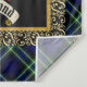 This Arbuthnot wall tapestry is a stunning piece to have in your home. Featuring framed lion supporters on either side of the clan badge and a golden thistle with crossed basket hilt claymore swords. Tapestries were hung on castle walls to keep the warm in from the cold stone behind them. Comes in all sizes.