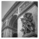 Here is a striking black and white photo of the facade of the Arc de Triomphe in Paris, France. L'Arc de Triomphe is an iconic Parisian landmark and one of the most visited tourist attractions in the City of Light. It is a popular monument in this European city.
