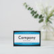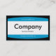 An arced rectangle with a white band with a black outer border. The top and bottom colours of the rectangle can be customised. Company details on the front and name and other contact details on the back.