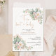 Lovely blush floral cactus taco 'bout a baby baby shower invitation for a baby girl featuring two arrangements and a fine line arch. The back of this girls baby shower invitation features a faux light rose gold glitter image and a faux rose gold glitter modern calligraphy heading.