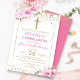 Arch Gold Pink Floral Girl First Holy Communion Invitation