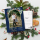 Arch Greenery Merry Christmas Photo Navy Blue Foil Holiday Postcard